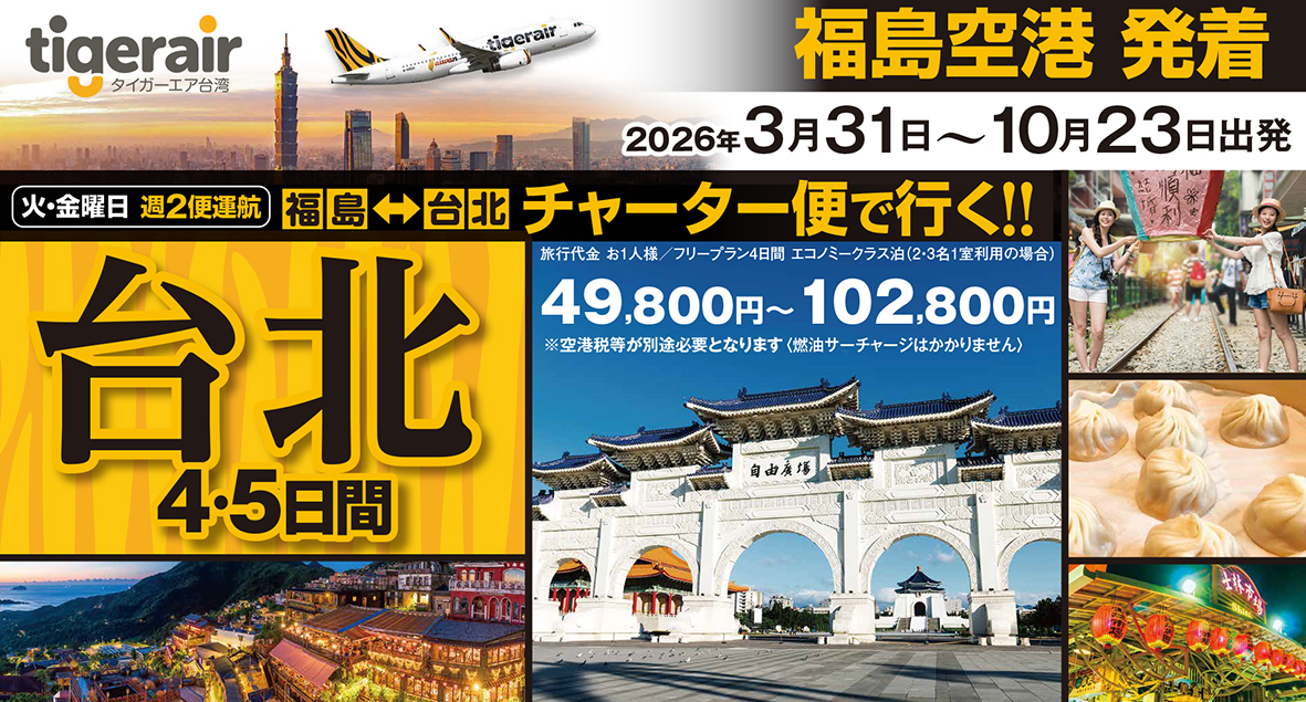 スターラックス航空で行く台北♪仙台空港から毎日運行中!多彩なホテルをご用意!カセットプランは人気観光地満載です!