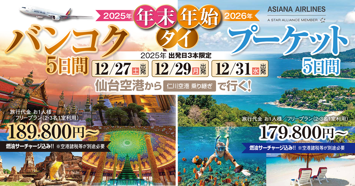 年末年始&連休利用の4本設定!観光・食事付きで驚きサプライス♪タイの魅力をギュっと詰めた4日間の旅♪6名様より催行確定!